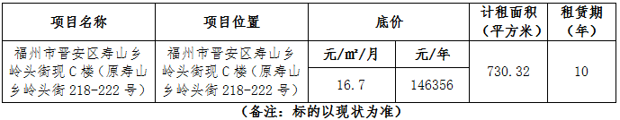1.以上仅为提示性公告,具体以福州海峡纵横电子竞价平台公告为准。各竞租人在规定的竞价时间内登录平台的竞价大厅(网址:www.salp.com.cn)参与本项目标的的报名和报价,最后按价高者得的原则确定承租人。