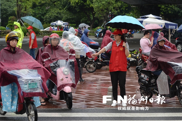 福州街头随处可见志愿者劝导交通。