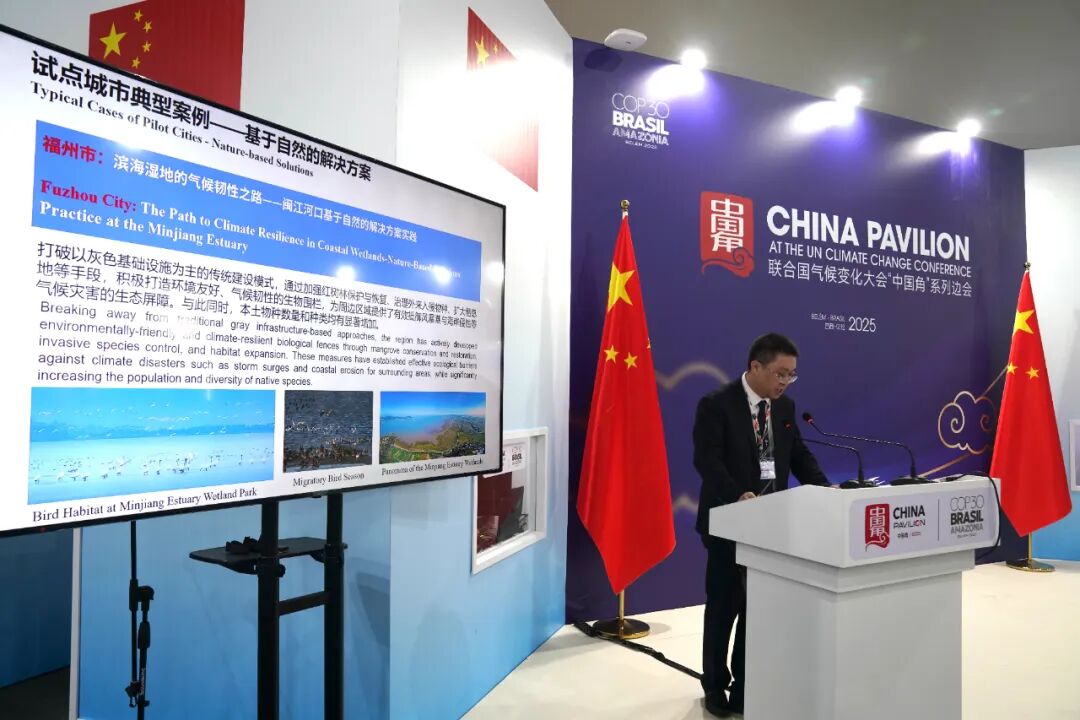 当地时间11月14日,COP30“适应气候变化中国方案”主题边会在巴西贝伦召开,由福州市生态环境局、长乐生态环境局和闽江河口湿地国家级自然保护区管理处联合报送的“滨海湿地的气候韧性之路——闽江河口基于自然的解决方案实践”案例从众多案例中脱颖而出,作为全国15个气候适应型城市典型案例之一,由生态环境部现场分享,向世界展现中国沿海城市在应对气候变化领域的创新理念与实践成果。