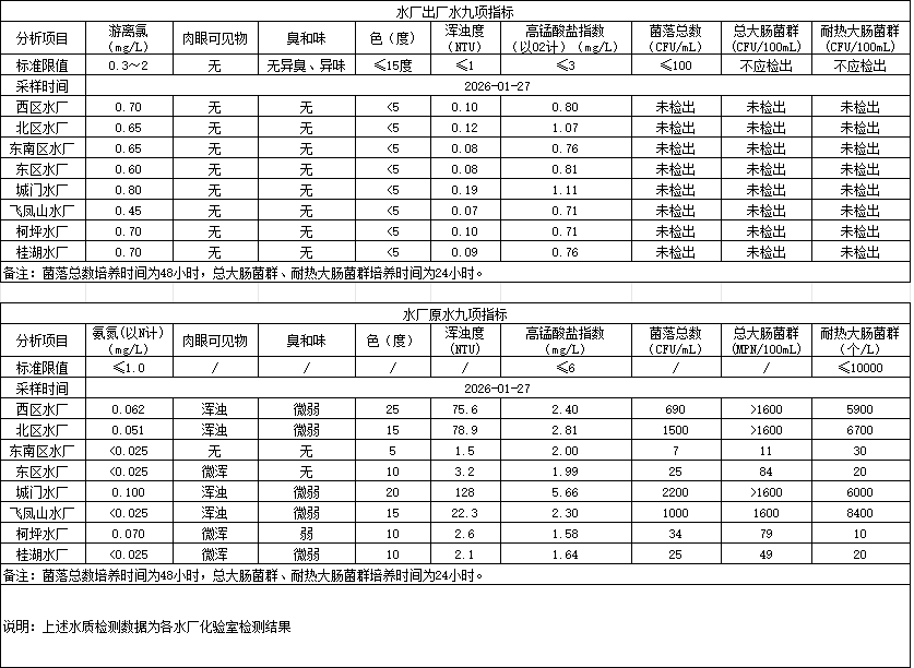 2026年1月27日供水水质信息发布