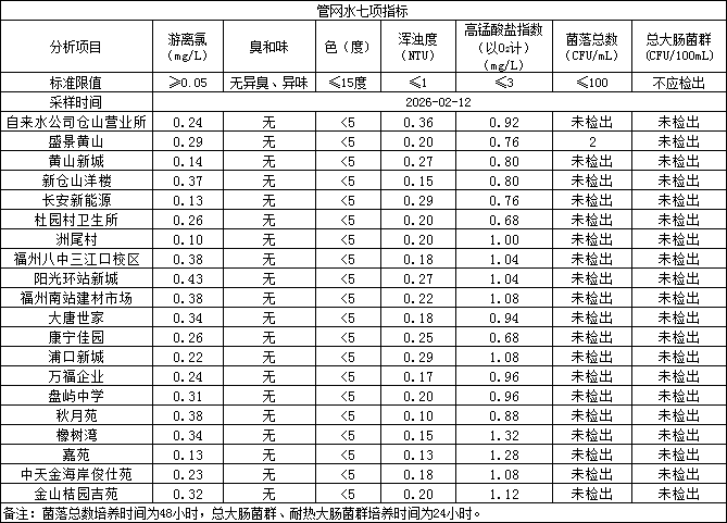 2026年2月12日管网水日常检测