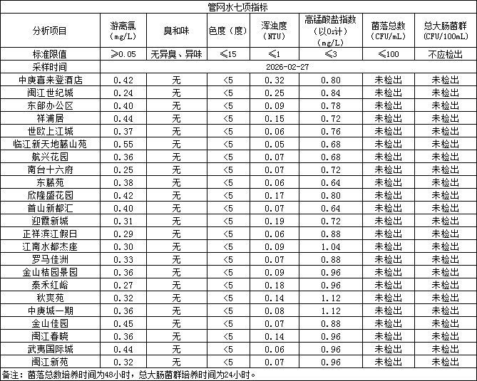 2026年2月27日管网水日常检测