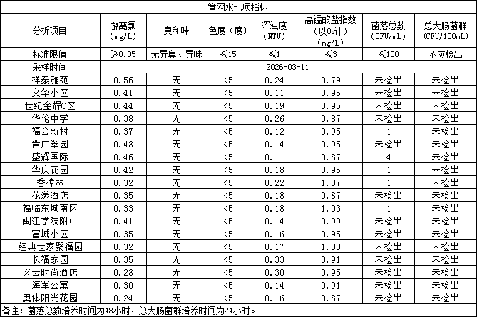 2026年3月11日管网水日常检测