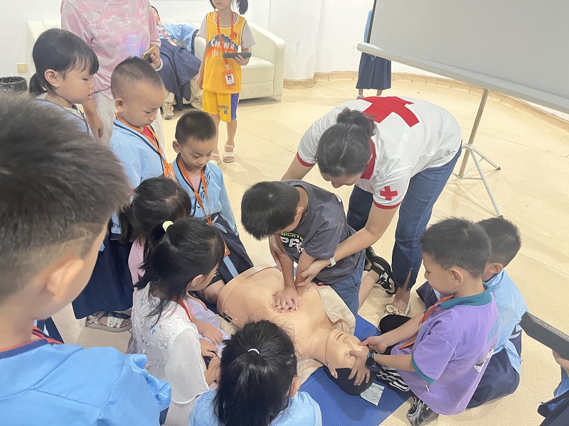 活动中,红十字会师资通过理论讲解、示范操作等方式,向学生家长们传授了心肺复苏基础急救技能,并针对溺水、触电、中暑、应急电话救援等常见意外事故的处置要点进行了详细指导。学生家长们在讲师手把手地指导下,利用模拟人道具进行实操练习,现场气氛积极热烈。