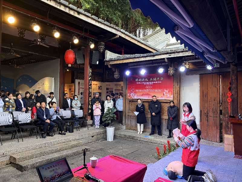 活动现场,福州市红十字救护师资现场演示AED使用及急救技能,并为来宾们开展急救培训,践行“生命无价,急救先行”理念。