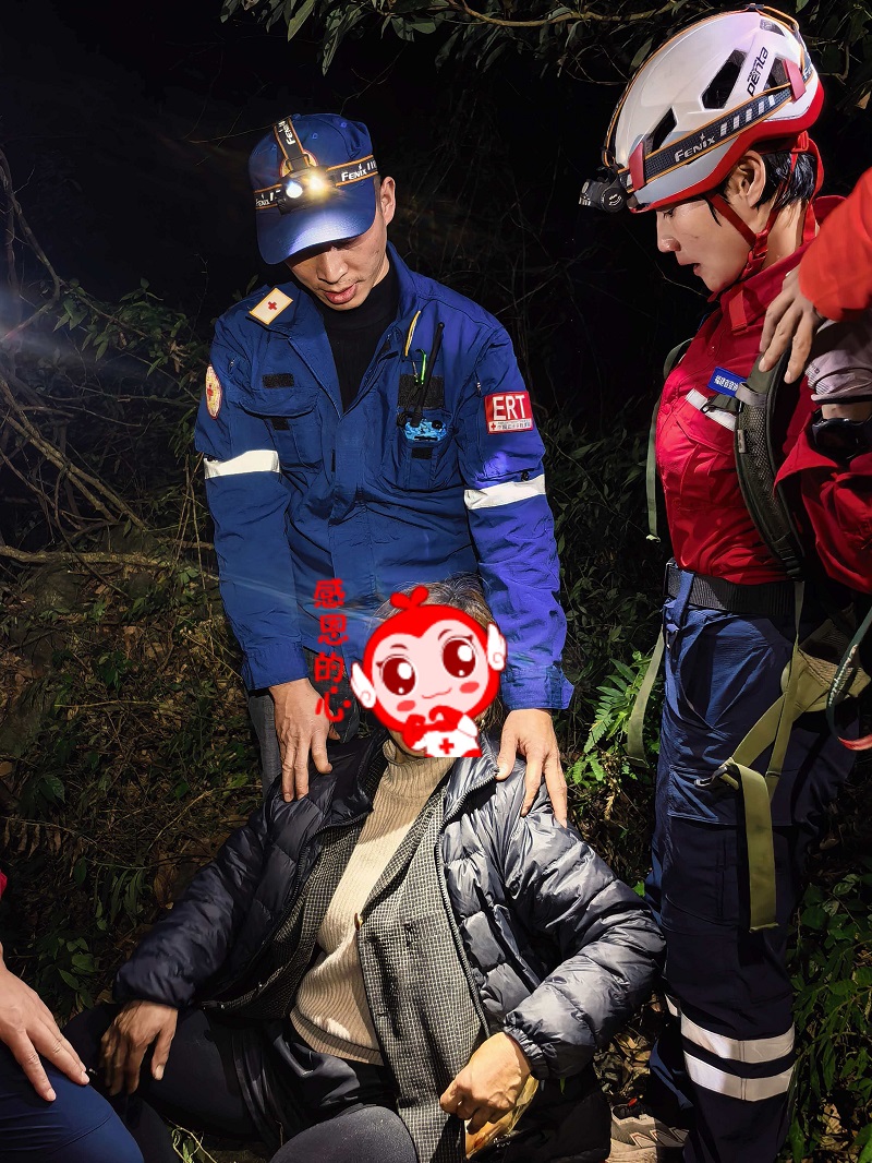 1月27日凌晨2时22分,在闽侯县红十字方舟救灾救援服务中心简称:红十字方舟救援队的帮助下,两名被困于有着“七里第一高峰”之称的蚊子岩的驴友安全抵达山下,与焦急等候的家人会合。获救后,两人连声道谢,救援队员则朴实回应:“平安就好”。