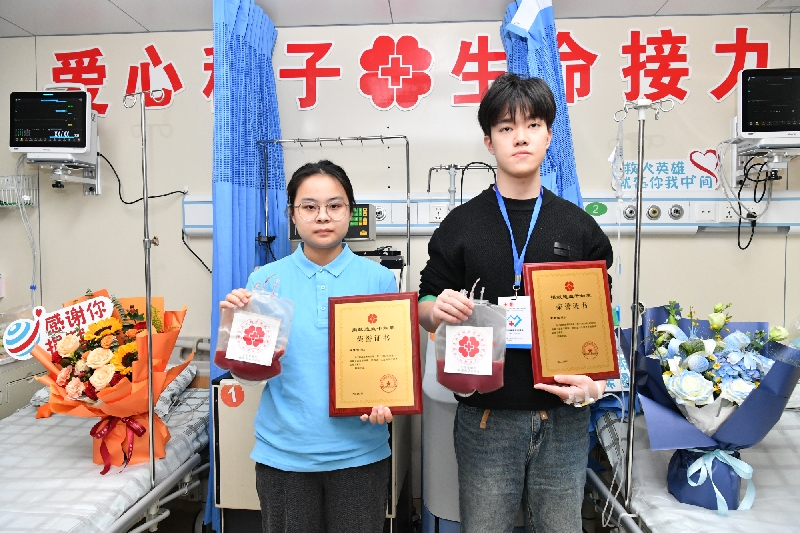 2025年11月21日是“世界问候日”。在这个温馨且有爱的日子里,两位“00后”青年黄君超、钱慧莹并肩完成了一场特殊的“生命接力”——作为非血缘造血干细胞捐献者,他们同日同院捐献造血干细胞,将青春热血化为最有温度的“生命礼物”,为两位素未谋面的血液病患者重燃生命送去希望。
