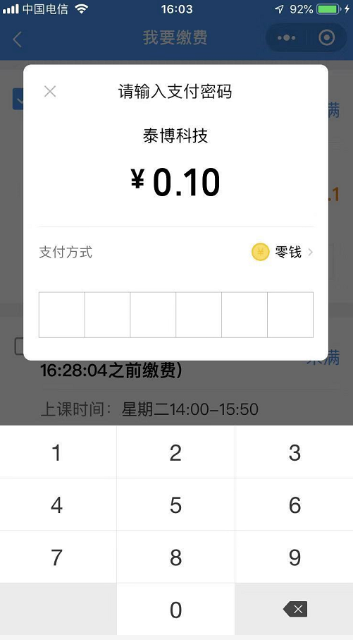 第十步:输入支付密码,输入成功后则报名成功,点击【完成】即结束报名。