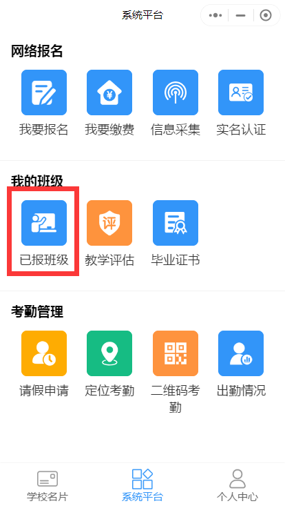 学员可点击【系统平台】—【已报班级】查询历史报名记录。