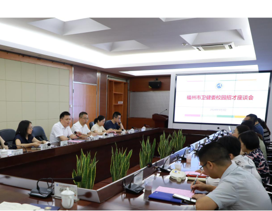 为进一步充实乡村医疗卫生人才队伍,做好2024年大学生乡村医生专项计划招聘工作,促进我市乡村医疗卫生体系健康发展,9月3日上午,福州市卫生健康委员会主任郭勇、副主任钟志华带领基卫处、人事处、福清市和长乐区有关人员赴福建省卫生职业技术学院开展大学生乡村医生专项计划招聘座谈会。福建卫生职业技术学院副校长黄铭珊、实习实训中心、学生工作部、 医学院、护理学院、药学院、医学技术与工程学院、公共健康与卫生管理学院领导和有关工作人员参加了座谈。