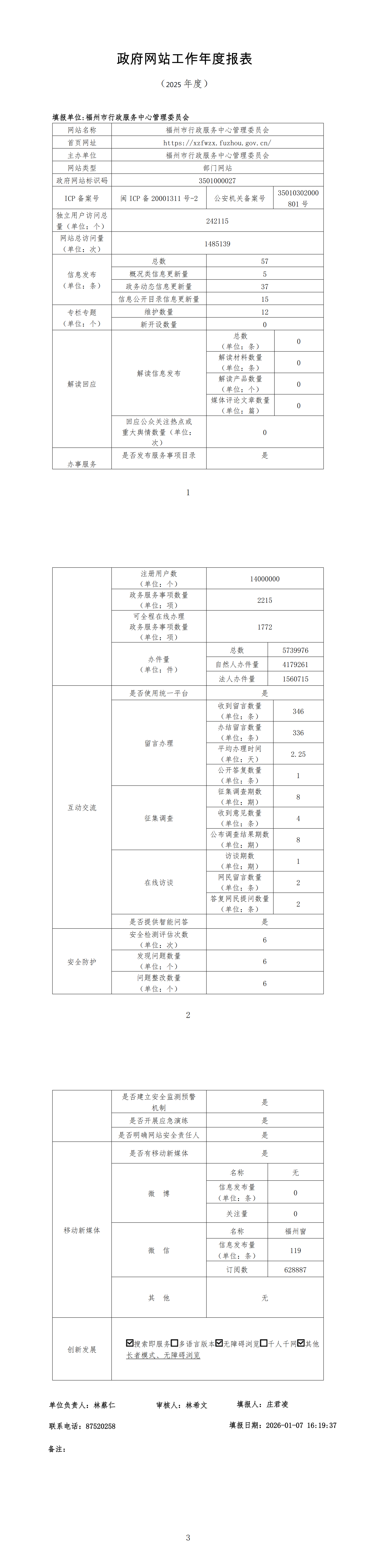 福州市行政服务中心管委会2025年政府网站工作年度报表