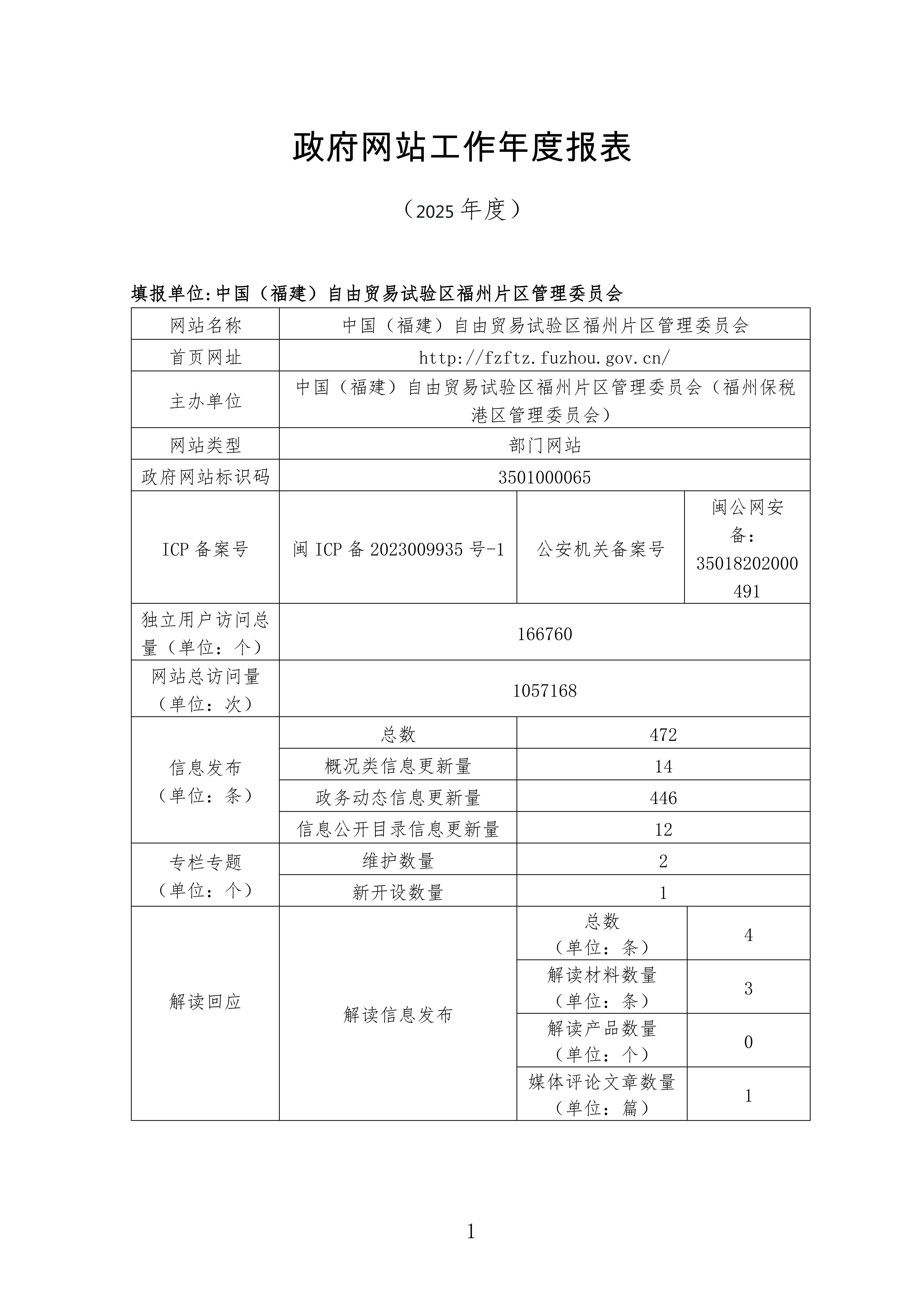 福州自贸片区2025年政府网站工作年度报表