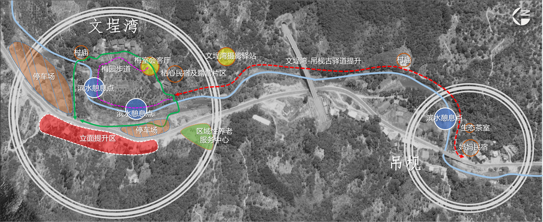通过梳理吊枧自然村的自然景观资源,打造吊枧亲水活动区、观景平台、露营基地等,打造一批美丽乡村庭院、建设一座养老服务中心、塑造一处休闲旅游点、用好一段青梅文化故事、盘活一批特色民宿、筹划一些闽台交流民俗活动。