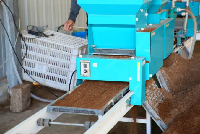 眼下是水稻育秧的关键期,在长乐区的福建雪美农业开发有限公司,数字化育秧中心的自动化育秧流水线正开足马力。种子经过清洗、浸泡、拌种杀菌后,再由机器精准完成上土、覆土、叠盘等操作。不一会儿,生产线末端就摞好一叠秧苗盘。得益于数字化育秧,每个秧盘盖土均匀,育出的秧苗健壮整齐,为后续的插秧作业打好基础。