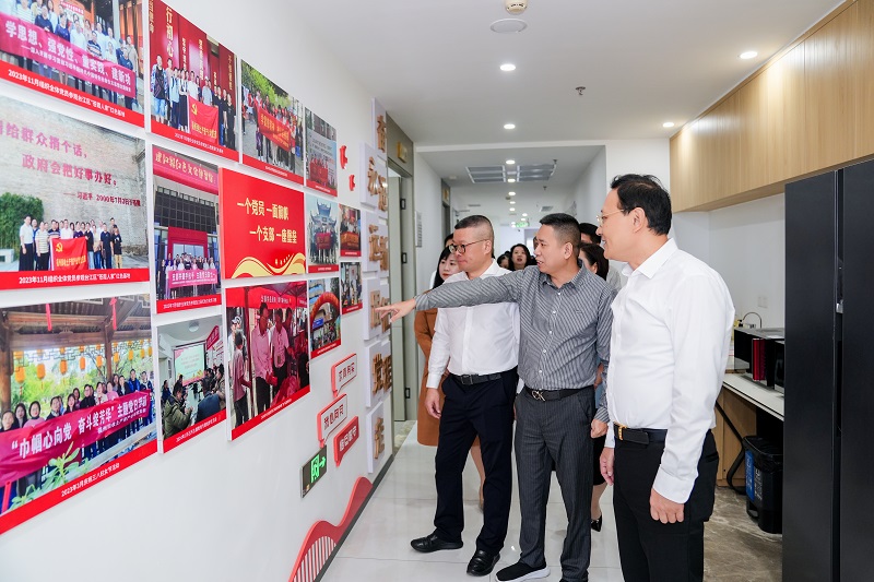 仪式结束完毕,郭传昭总经理引导市社领导及各处室参观公司党建墙、党员活动室及各个部门办公室。市社一行对新办公场所的办公环境和所展现的员工风貌给予高度评价。