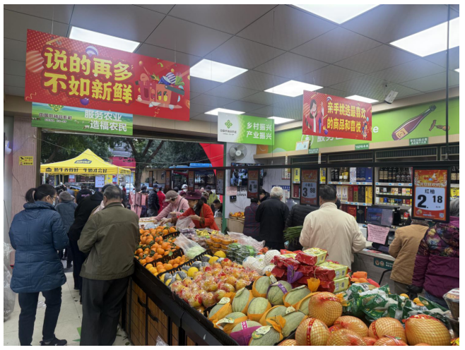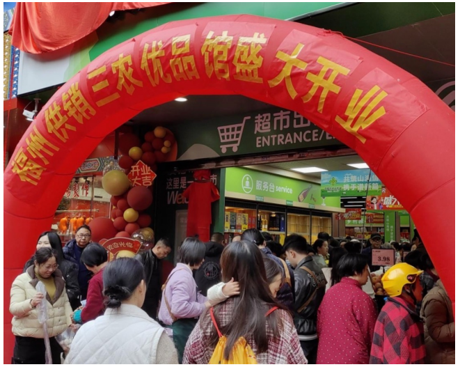 12月25日至12月28日,福州供销三农优品馆周年盛典如期启幕,以喜庆氛围、丰厚福利与扎实服务,向长期支持优品馆发展的市民朋友们致以诚挚谢意。城北公司总经理苏琴亲临现场,与广大市民共同见证这一意义非凡的周年庆盛事,重温为农初心,共绘发展新篇。周年庆期间,三农优品馆满满诚意回馈市民。门头气球装饰洋溢着浓厚庆典氛围,外摆区域商品琳琅满目,在冬日暖阳的映照下,这场福利盛宴正式拉开帷幕。活动现场盛况空前,附近居民纷纷闻讯而来踊跃采购,米面粮油、生鲜蔬菜等产品限时折扣,一度供不应求、被抢购一空。优质的商品、实在的优惠与贴心的服务,让无数顾客赞不绝口,真正实现 “乘兴而来,满意而归”。