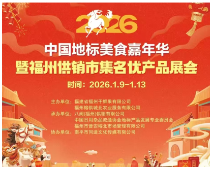 2026年1月9日,由福建省福州干鲜果有限公司携手福州榕供城北农业服务有限公司共同打造的“中国地标美食嘉年华——福州供销市集名优农产品展示展销会”盛大启幕。本次展会以“弘扬中国传统文化,营造喜庆祥和氛围”为宗旨,创新性地融合“非遗表演+美食体验”,挖掘美食文化的深厚底蕴,搭建起各地特色名小吃直通消费者的桥梁。
