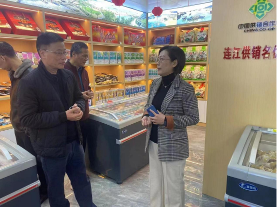 调研组前往连江县琯头供销社惠农综合服务中心、连江县供销社惠鲜达配送中心、连江县名优特农产品展示馆、连江县供销社消费扶贫馆等地,详细了解项目建设、助农服务综合平台运营等基本情况。