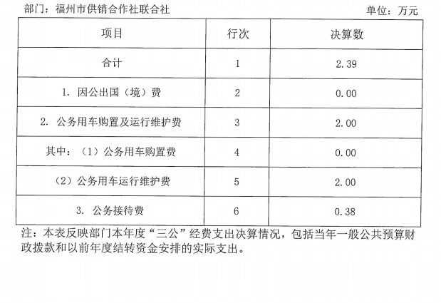 福州市供销社2023年一般公共预算财政拨款“三公”经费支出决算表