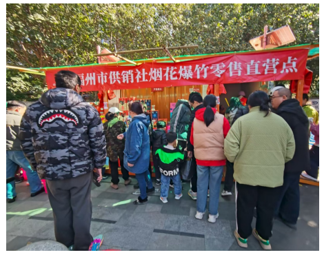 为响应市政府“保价稳供”号召、遏制“私炮”乱象,日杂公司在市社指导下开展烟花爆竹直营点运营工作。2025 年春节期间,分布在城区的15 个直营点,以规范经营和优质服务为福州市民提供平价优质烟花爆竹,赢得广大市民好评,提升了供销社企业品牌形象与市场影响力。