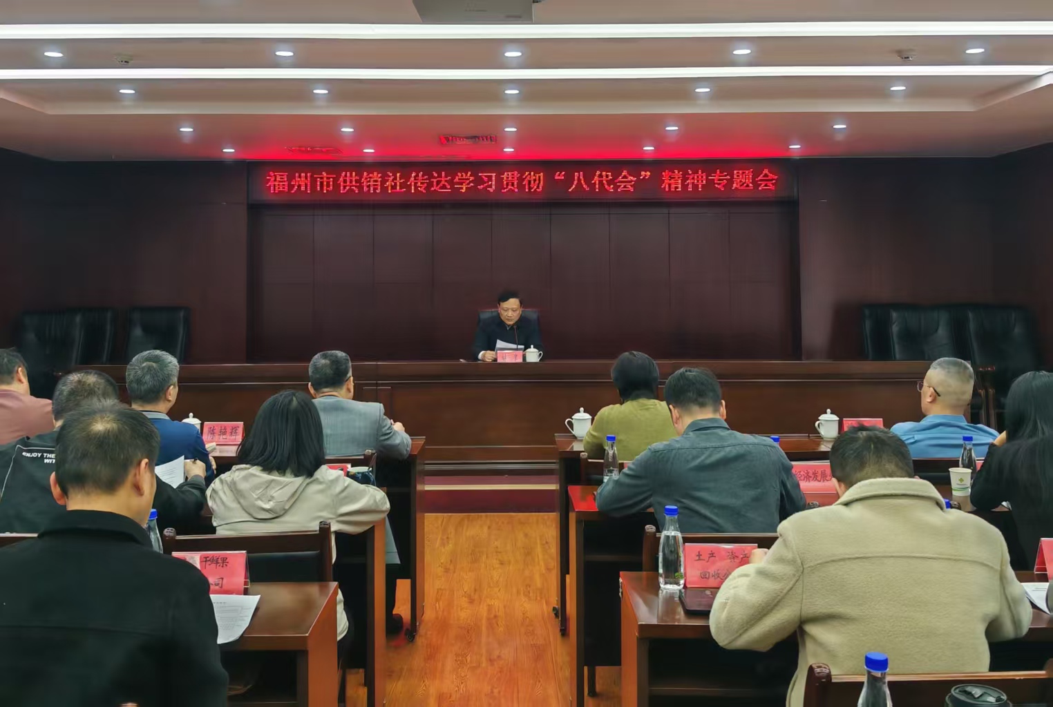 2025年12月4日,福州市供销合作社召开专题会传达学习贯彻中华全国供销合作社第八次代表大会精神。八代会代表、福州市供销社党委书记、主任林津主持会议并强调贯彻落实意见。