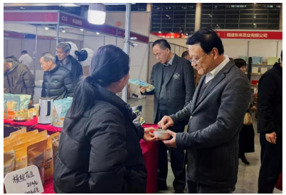 1月30日,由福州市供销社直属企业福州日用杂品有限公司联合福州会展会务集团有限公司共同主办的“2026第二届福州都市圈年货大会暨全国(福建)地标优品供销采购会”系列活动在福州海峡国际会展中心1号馆盛大开幕。福州市供销社党委书记、主任林津,党委委员、副主任林秀萍等出席启动仪式并参观展会现场,与参展商深入交流,了解年货销售情况。在展位前,市民朋友们饶有兴致地品尝各地地标美食,轻尝山西老陈醋、细品闽清橄榄,体验年货大会丰富多样的美食魅力,对各类商品给予充分肯定。