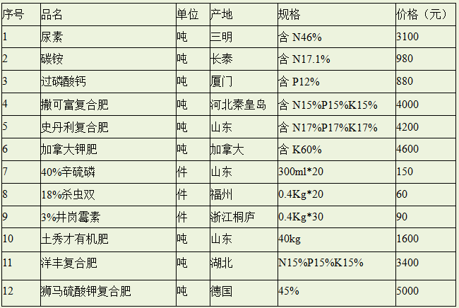 主要农资价格
