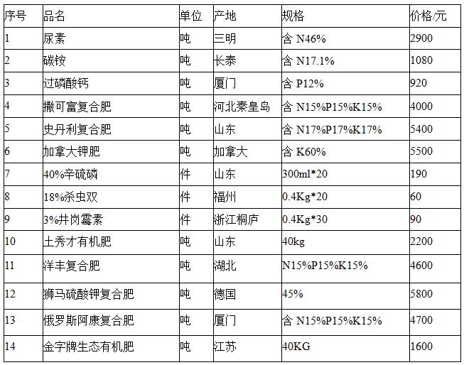 主要农资价格