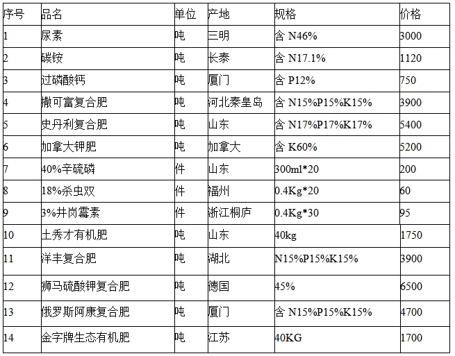 主要农资价格