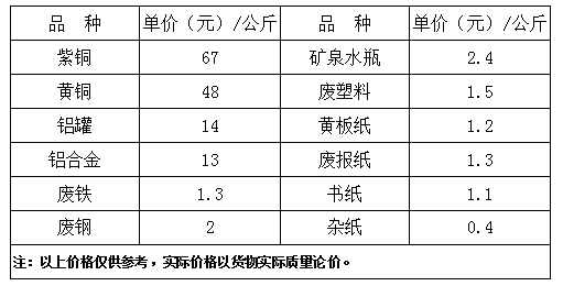 2025年8月25日福州市再生资源收购价格