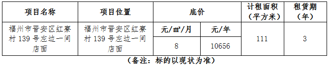 1.以上仅为提示性公告,具体以福州海峡纵横电子竞价平台公告为准。各竞租人在规定的竞价时间内登录平台的竞价大厅(网址:www.salp.com.cn)参与本项目标的的报名和报价,最后按价高者得的原则确定承租人。