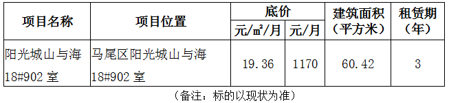 1、以上仅为提示性公告,具体以福州海峡纵横电子竞价平台公告为准。各竞租人在规定的竞价时间内登录平台的竞价大厅(网址:www.salp.com.cn)参与本项目标的的报名和报价,最后按价高者得的原则确定承租人。