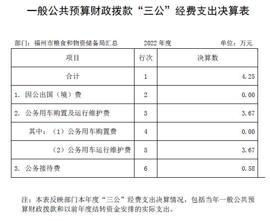 2022年度福州市粮食和物资储备局一般公共预算财政拨款“三公”经费支出决算表