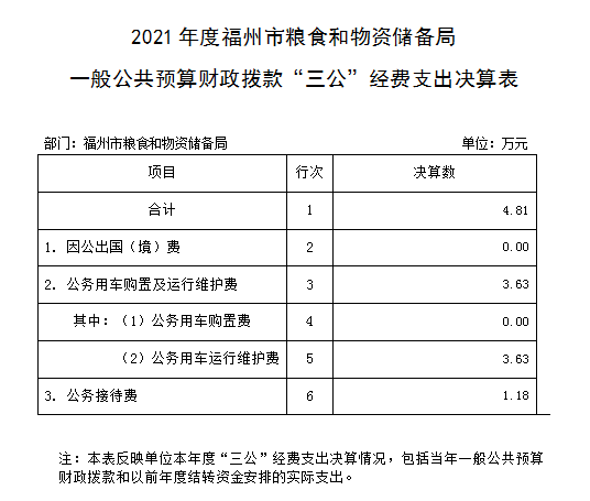 2021年度福州市粮食和物资储备局一般公共预算财政拨款“三公”经费支出决算表
