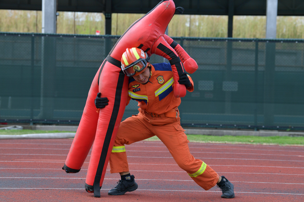 灭火救援员项目同样扣人心弦。“100米消防障碍”中,消防员如猎豹般穿越障碍、精准出水;“攀登挂钩梯”项目,他们身手矫健,迅速登顶;“救援技能”环节,展现了科学施救、生命至上的专业素养。