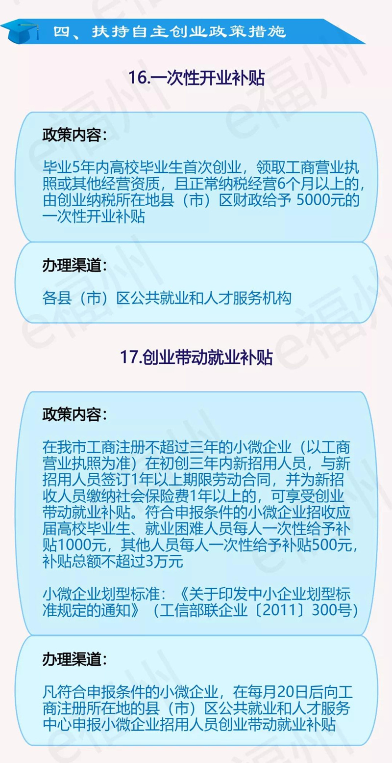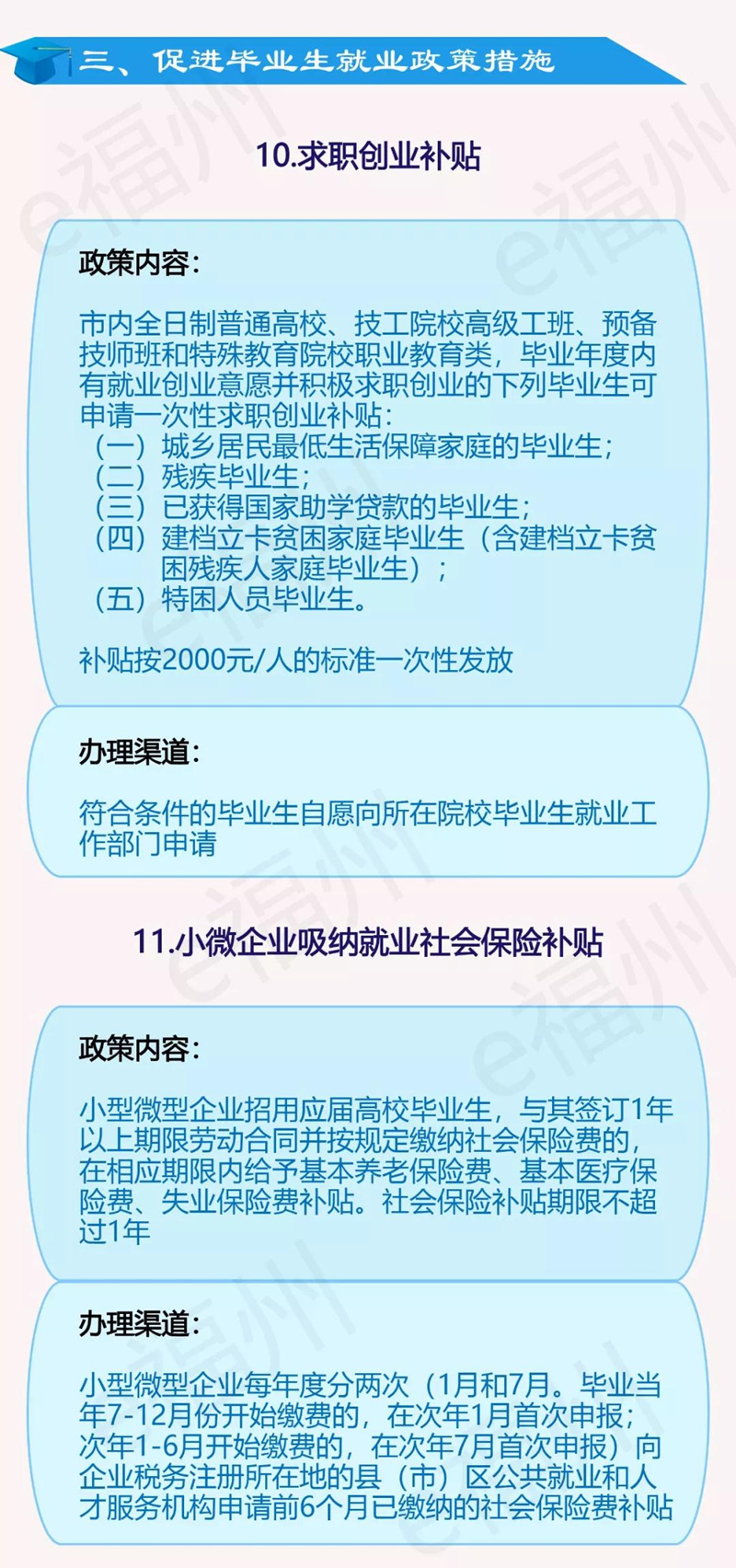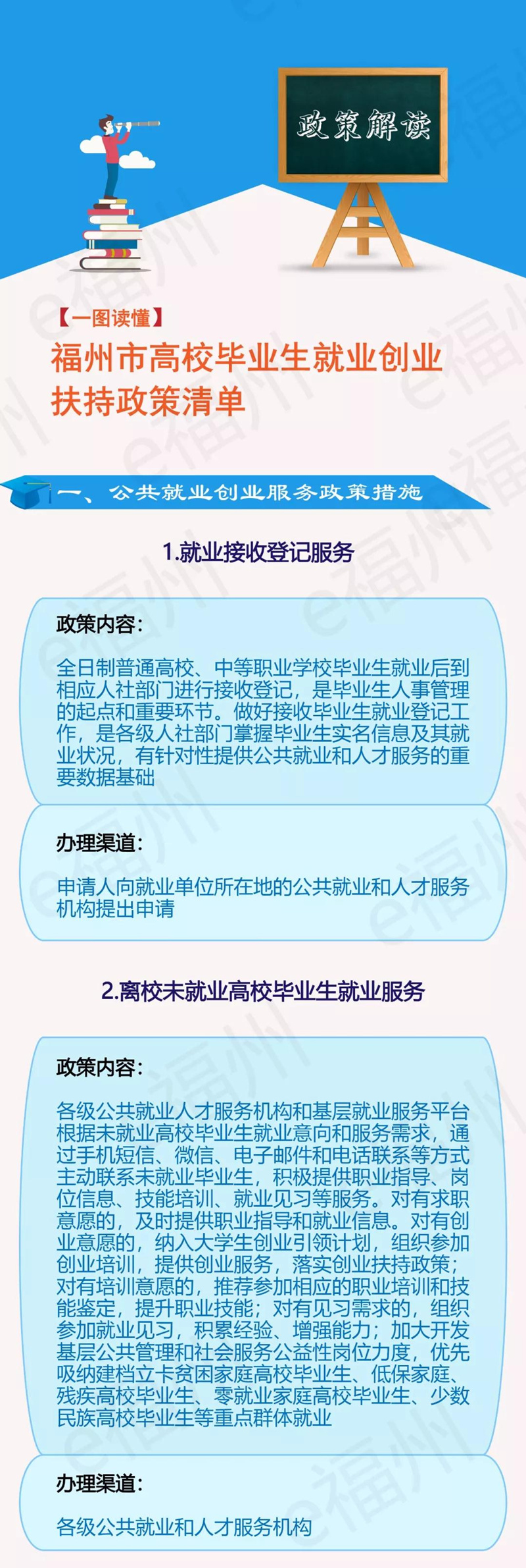 关于《福州市高校毕业生就业创业扶持政策清单》的图解