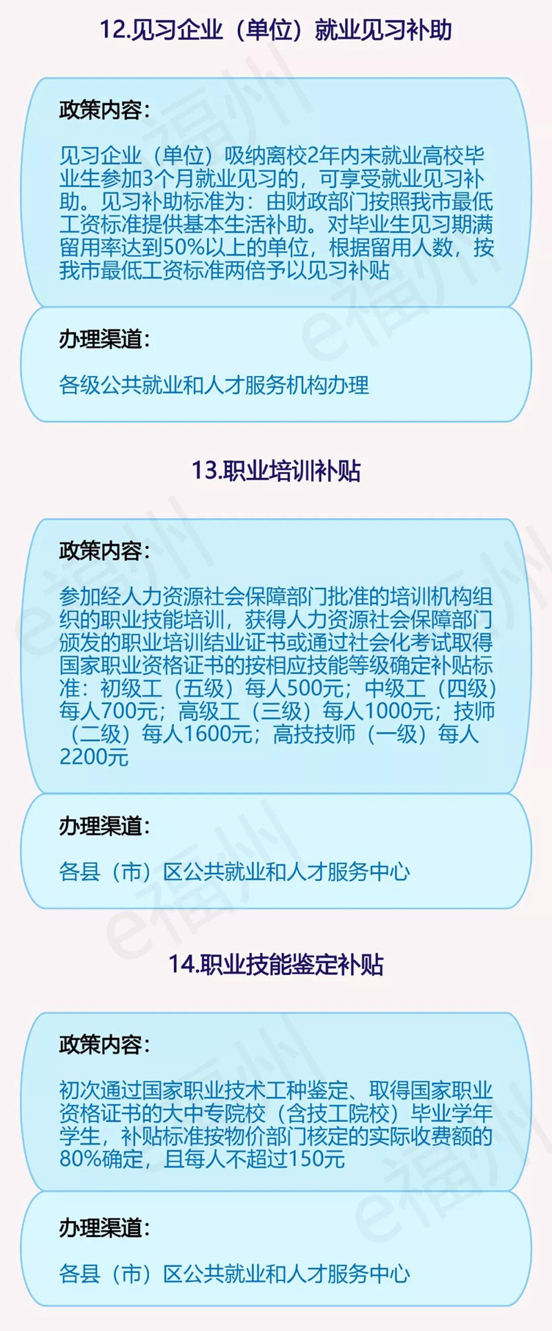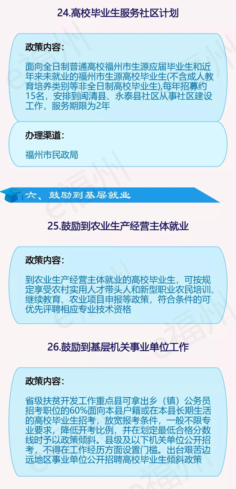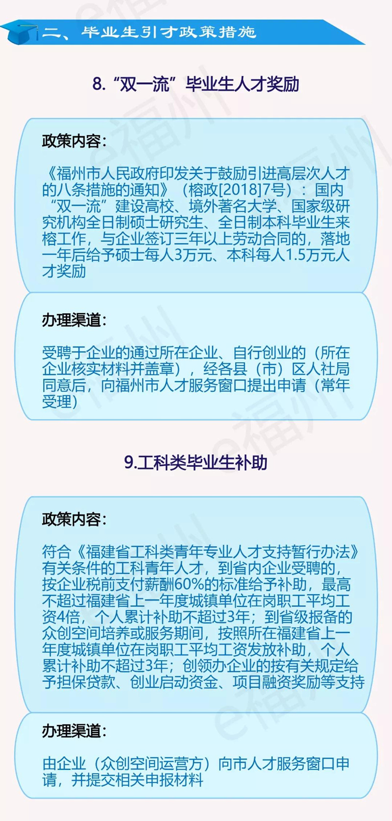 关于《福州市高校毕业生就业创业扶持政策清单》的图解