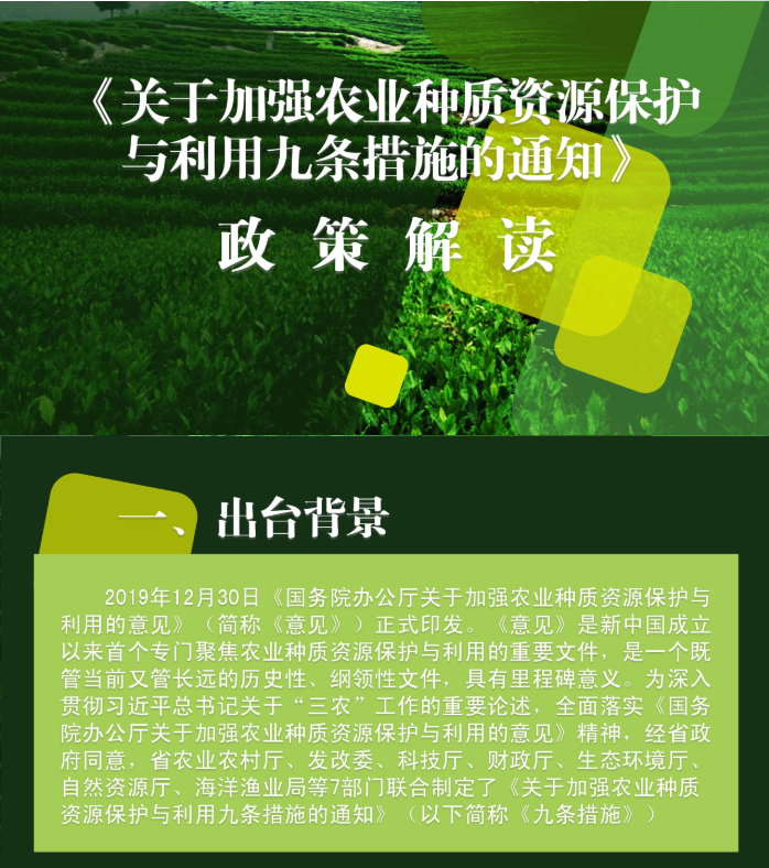 《关于加强农业种质资源保护与利用九条措施的通知》政策解读