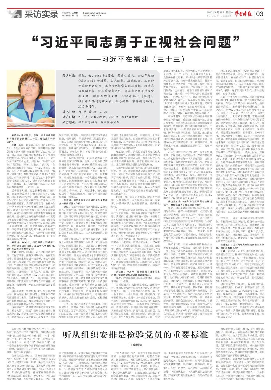 习近平同志任省委副书记时,曾分管农林水利,我恰好是《福建日报》分管这项工作新闻报道的部门主任,因此多次跟他下乡。他对农村的情况很熟悉,对基层群众很有感情,一到乡下很快就能融入百姓,如鱼得水。