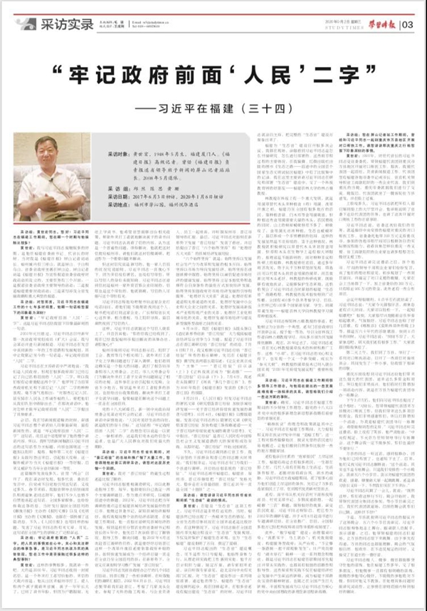 黄世宏:“牢记政府前面‘人民’二字”,这是习近平同志给我留下印象最深刻的一句话。