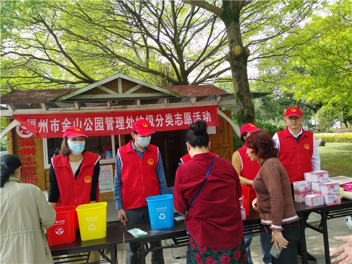 为进一步提高市民对垃圾分类投放的正确率,倡导“文明、健康、绿色、环保”生活方式,2021年4月16日,福州市金山公园管理处志愿者携手熊猫不走生日蛋糕,在金山公园志愿服务站开展垃圾分类志愿活动。
