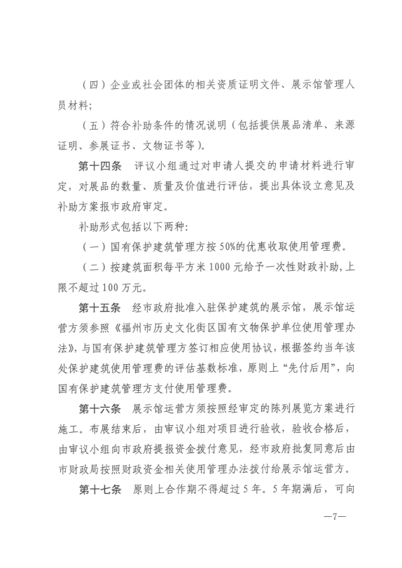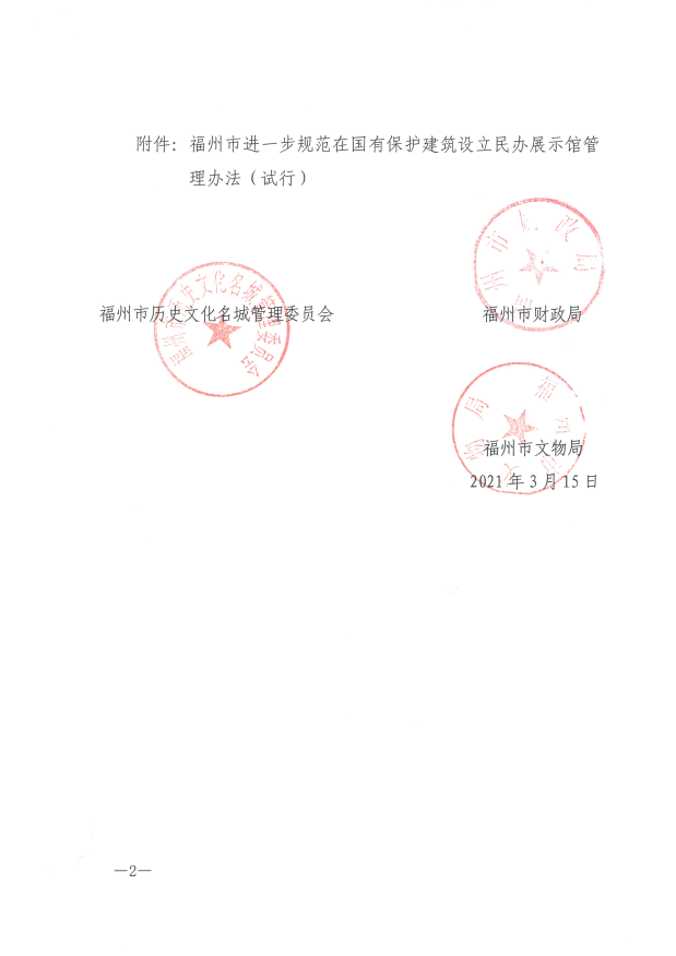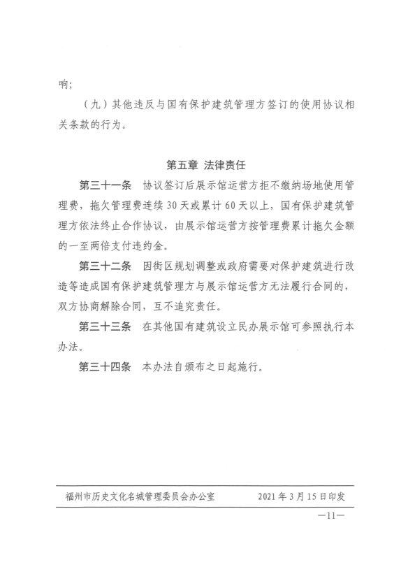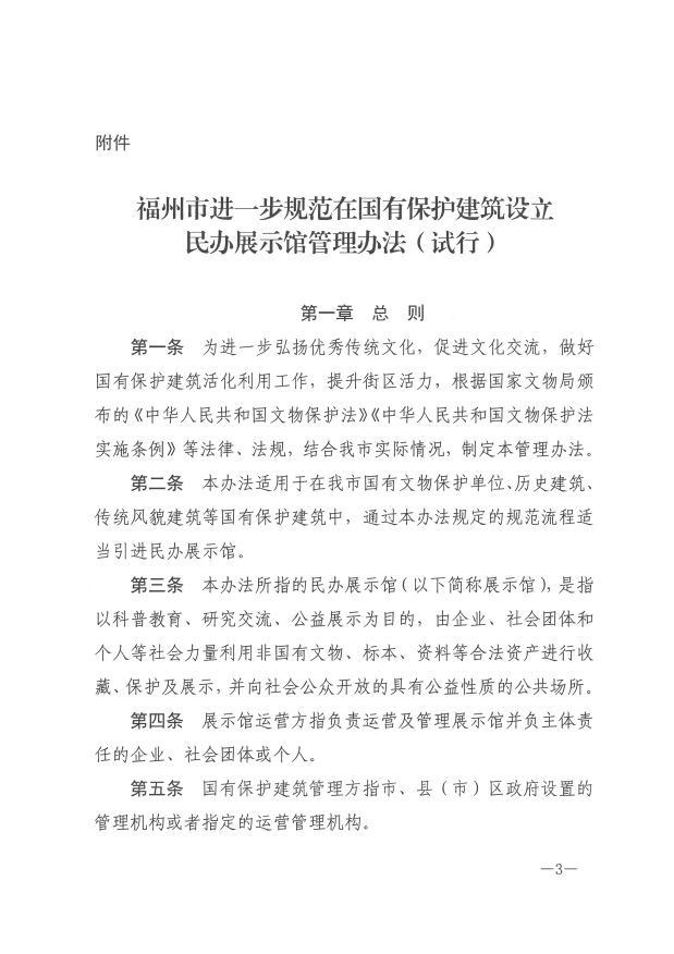 关于印发《福州市进一步规范在国有保护建筑设立民办展示馆管理办法(试行)》的通知