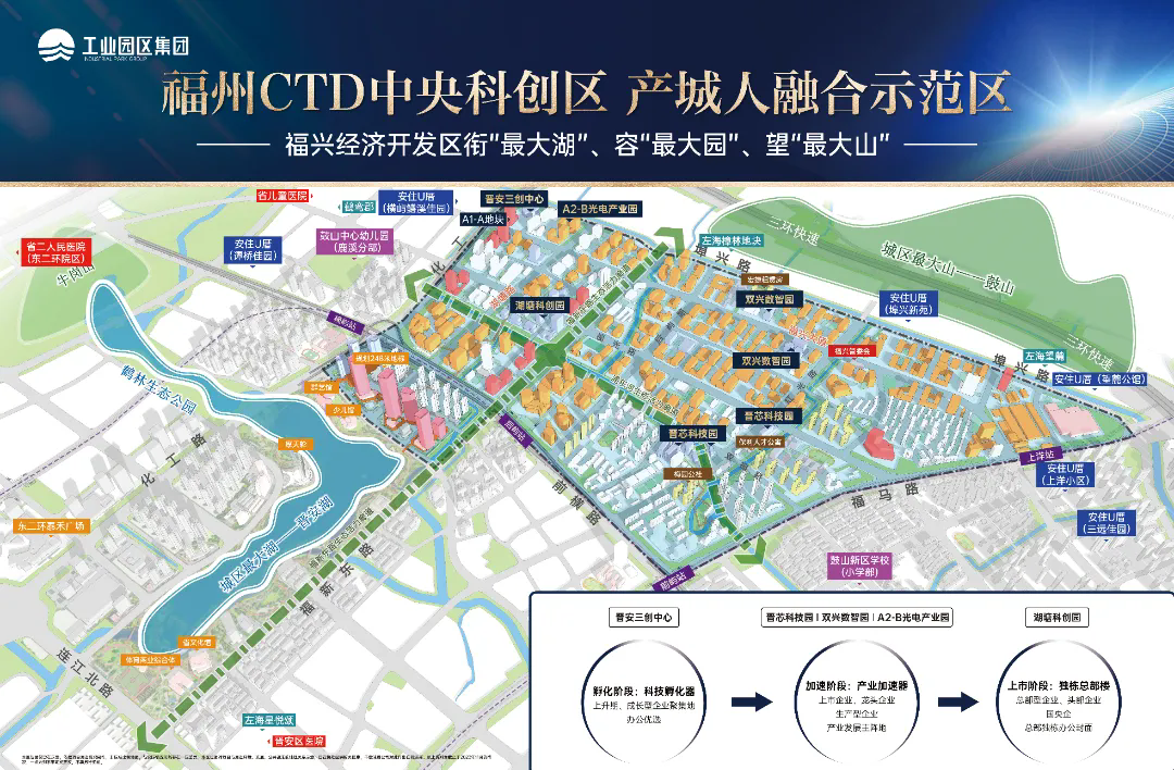 近年来,工业园区集团围绕“产城人”发展理念,依托晋安区协同发展的集成优势,深耕福兴经济开发区,在构筑高品质产业载体的同时,加大宜居建设力度,构建“孵化器-加速器-总部经济”全链条孵化育成体系;配建10个住宅、1个公建项目、2813套公寓、14所学校,打造产业综合服务生态圈,助力福兴经济开发区产城人融合示范区进一步发展。