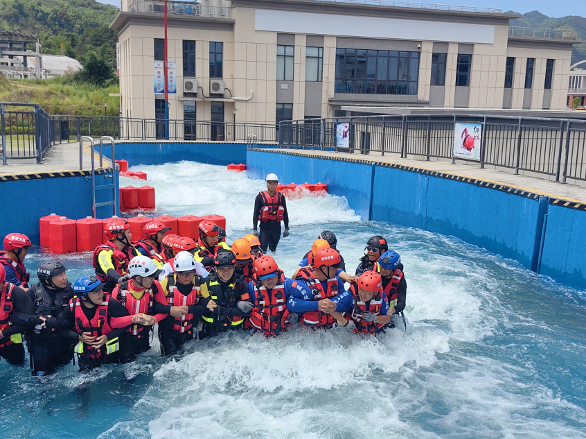 培训分森林火灾扑救与逃生技术、防台防汛应急救援(水域救援)和地震地灾应急救援三个专业,每期5天,采用“大班理论+小班实操+实战演练”模式。在理论环节,经验丰富的教官团队引入了大量案例分析,有效辅助理论知识的吸收理解。在实操环节,参训人员沉浸式融入水域激流、滚水坝、死亡V、地震废墟、滑坡体等灾害模拟现场,直观提升救援技能。在实战演练环节,开展了森林火灾扑救、抛绳救援、城市内涝、生命探测、破拆支撑、伤员转运等团队救援实战演练,并引入新型救援装备,优化了团队救援流程,提升了效率与能力。