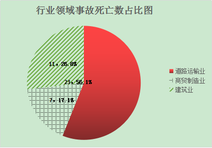 (二)按行业领域划分。道路运输业、商贸制造业、建筑业等重点行业事故起数、死亡人数同比“双下降”,其中农林牧渔业、采矿业没有发生事故。