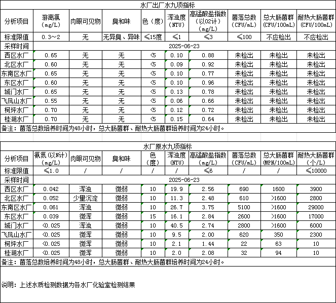 2025年6月23日供水水质信息发布