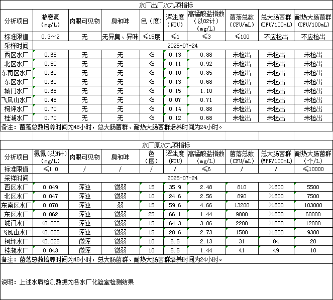 2025年7月24日供水水质信息发布