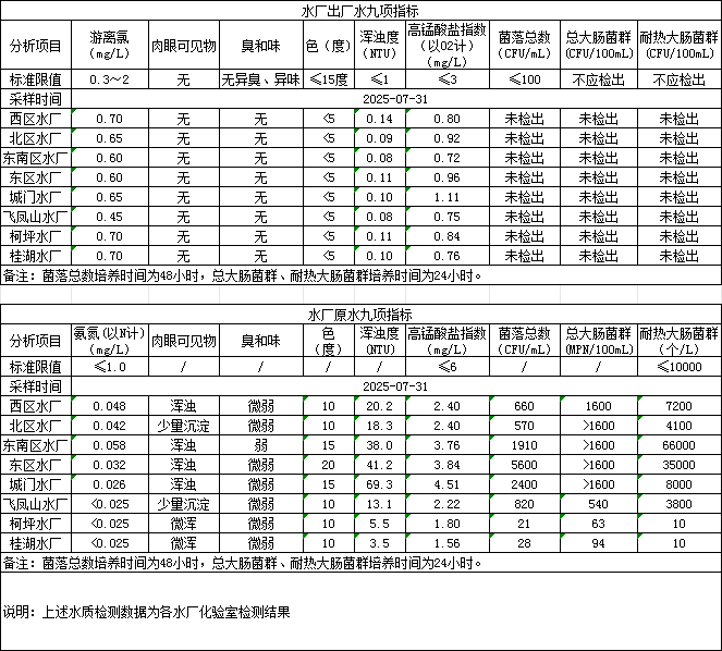 2025年7月31日供水水质信息发布