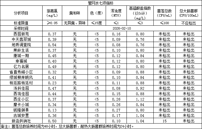2026年2月10日管网水日常检测