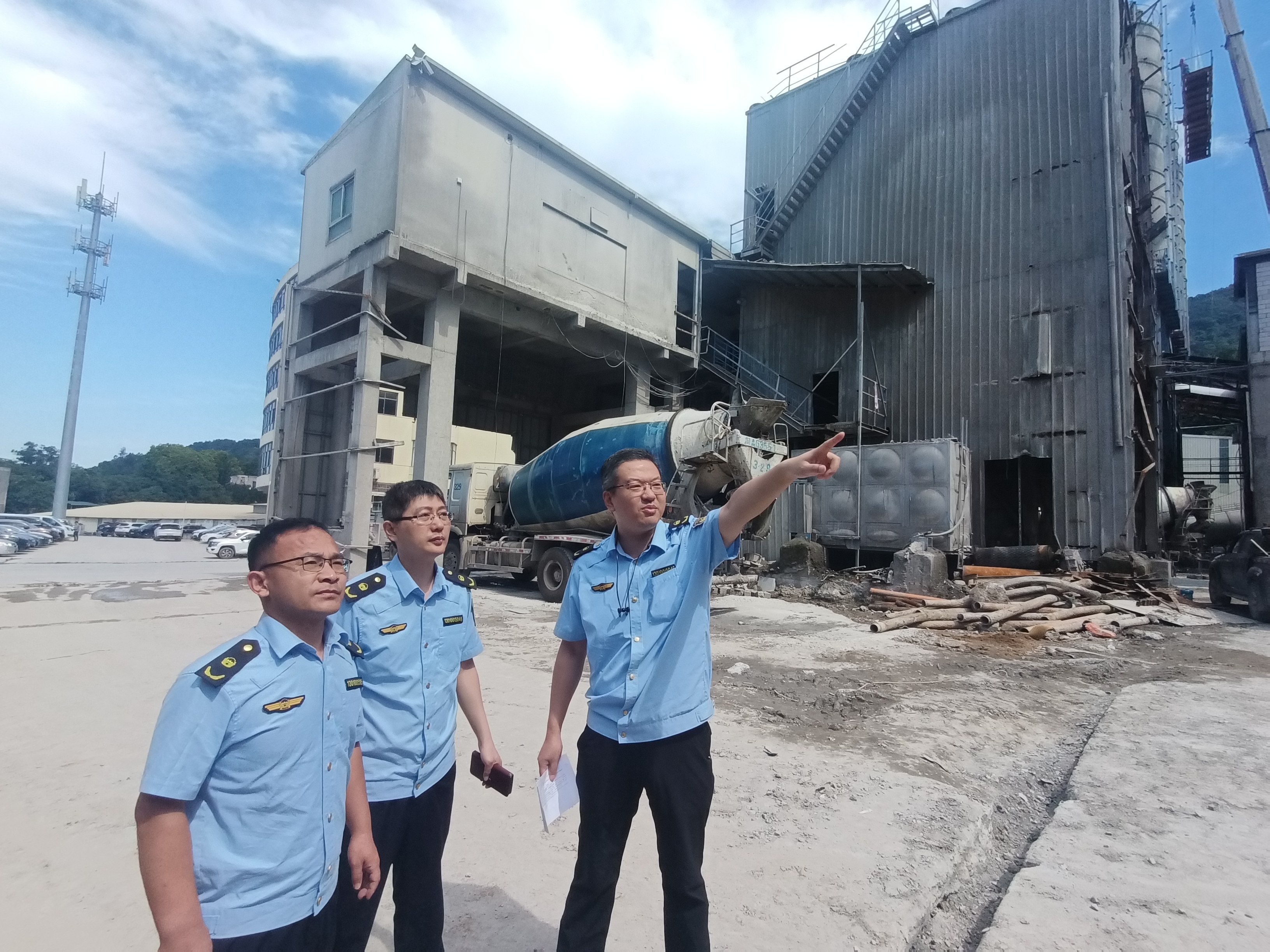 首先,案件主讲人黄中在埔里溪上游的涵洞进行现场还原,向队员们介绍了污水性状、流向摸排、影响范围等情况。随后,沿排水沟向上游介绍,来到该公司初期雨水收集池、污水溢流处,讲解了污水三个采样点的选择理由和证据固定情况,其他队员们随即对日常执法中污水采样经验展开探讨。探讨结束后,一行人员从收集池出发,沿厂区雨水沟对污水溢流的多个环节进行实地溯源,全面分析了该公司原料水份把关不严、原料场污水收集不科学、初期雨水回用水泵设备维护不及时等造成生产污水溢流的原因。